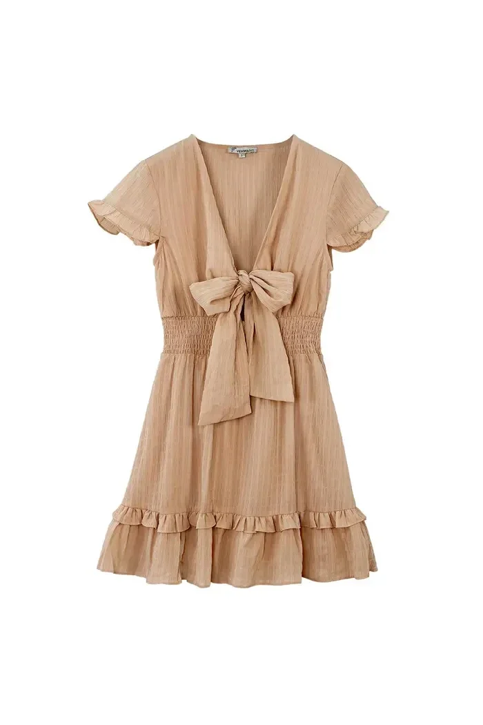 Schattige mini jurk met grote strik aan de voorzijde. Gemaakt van polyester.