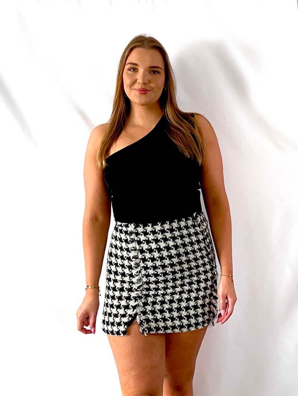 Omarm tijdloze elegantie met onze pied de poule set, perfect samengesteld voor verfijnde gelegenheden. De pied de poule print voegt een klassieke en stijlvolle touch toe aan deze veelzijdige set. Of je nu een zakelijke bijeenkomst hebt of een speciale gelegenheid viert, deze blazer en rok set is de perfecte keuze. Gemaakt van hoogwaardige materialen voor comfort en met oog voor detail, biedt deze set een moeiteloze combinatie van chique en klassiek. Bestel nu en voeg tijdloze elegantie toe aan je garderobe met onze pied de poule blazer en rok set!